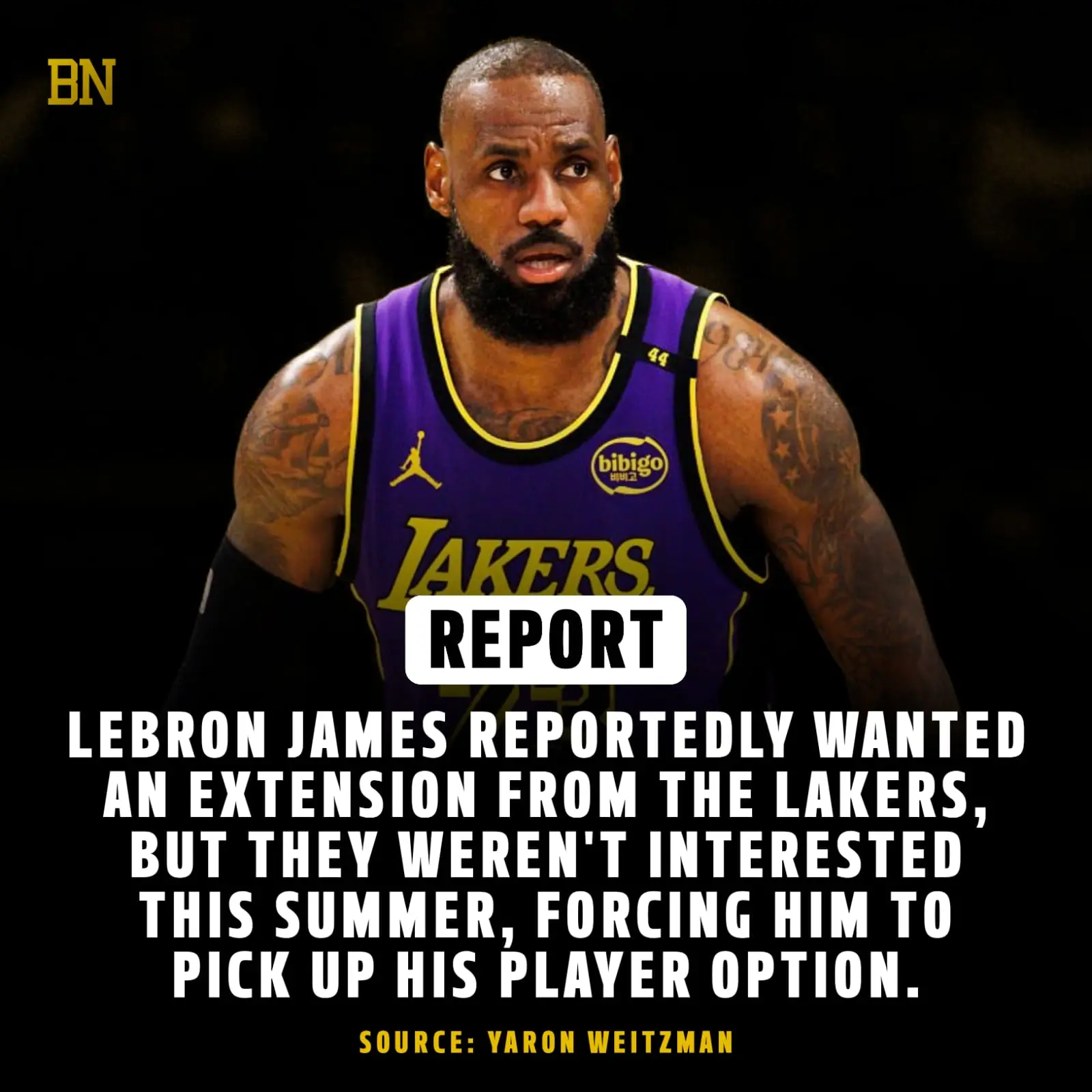 据报道称,勒布朗詹姆斯跟湖人索要一份1+1的续约合同,希望拥有球员选项和交易否决权。但是,湖人拒绝了勒布朗詹姆斯的续约要求,这也是迫使勒布朗詹姆斯不得不选择5260万美元的球员选项。